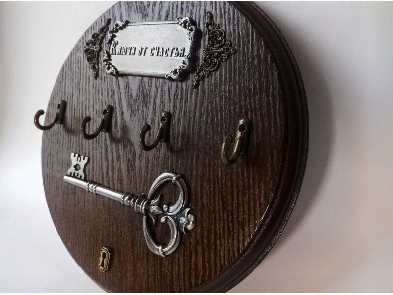 Во-вторых, стоит определиться с оформлением ключницы. Кому-то по нраву строгие функциональные решения (больше подходят для офисов, общественных заведений, ресепшен и т.д.), а кто-то ищет яркий декор с символическими образами или теплыми романтичными надписями. Характер хозяев можно прочитать и по предпочтениям в образах, которые украшают дизайнерские ключницы – от милых котиков, романтичных сюжетов, мудрых сов и до картин охоты и автодрайва. Нередко также при выборе ключницы ищут изображение или формы талисманов – в виде подковы, ключа к счастью, с фигурками слонов и т.д.