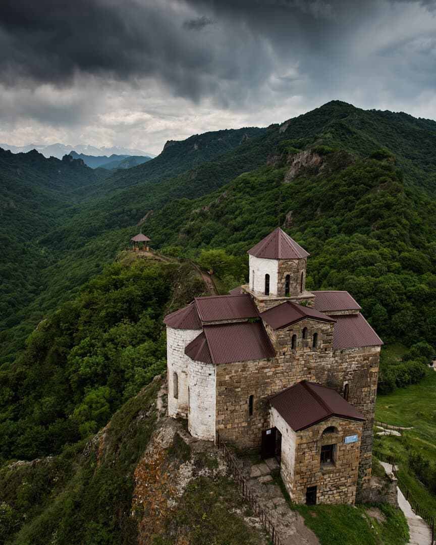 Подсказываем: — Этот христианский собор создан по традициям византийских построек. — Его возраст — 10 веков. — Расположен на отвесной скале. — Находится на территории Карачаево-Черкесии. — Изображен на российской памятной монете, выпущенной в 2016 году.