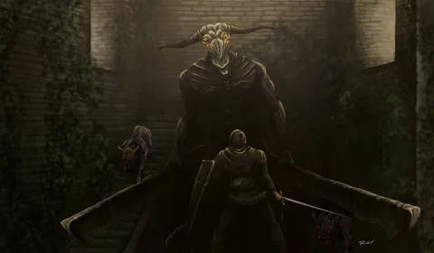 Итак, в этом выпуске мы накостыляем демону Капре и обойдем до конца Поселение Нежити. Но для начала, давайте вернемся к Черному Рыцарю, который был недалеко от первого костра этой локации. Он находится на спуске, перед лестницей, с которой полый солдат сбрасывал горящую бочку.