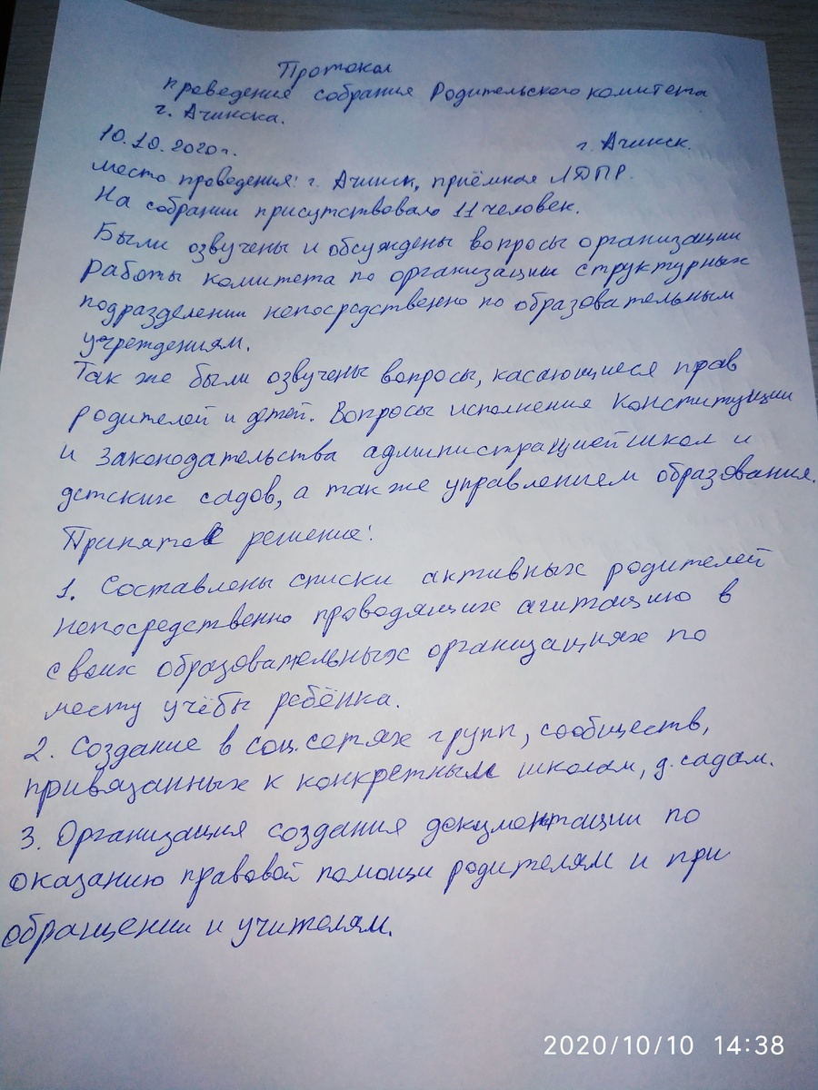 10.10.2020 г. прошло собрание Родительского комитета г. Ачинска. Были рассмотрены вопросы создания и взаимодействия подразделений Родительского комитета по образовательным учреждениям (д.сады, школы). Так же вопросы организации и просвещения родителей.