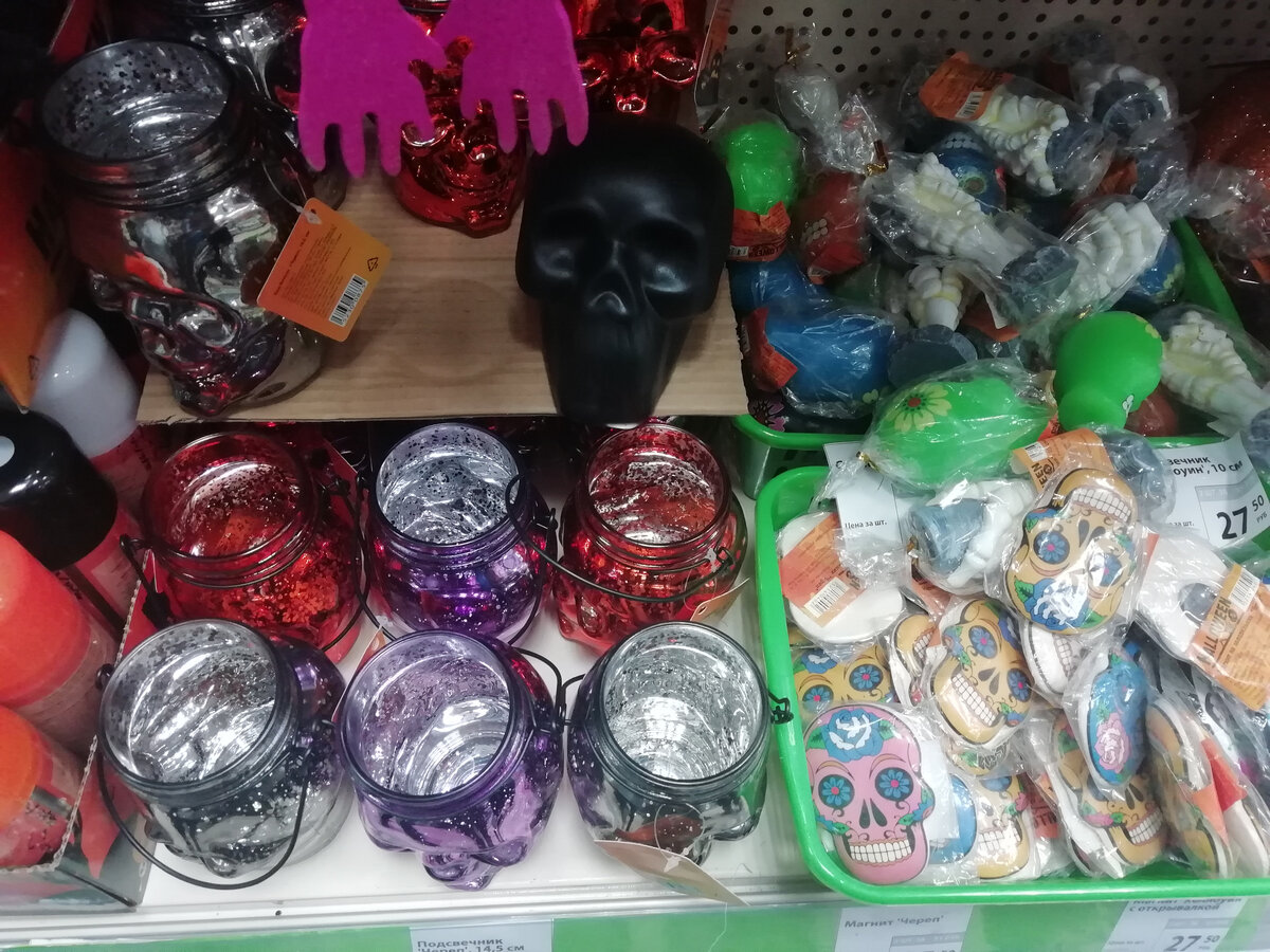 В первых рядах как входишь в магазин, появилось нечто. А именно товары к Хеллоуину.