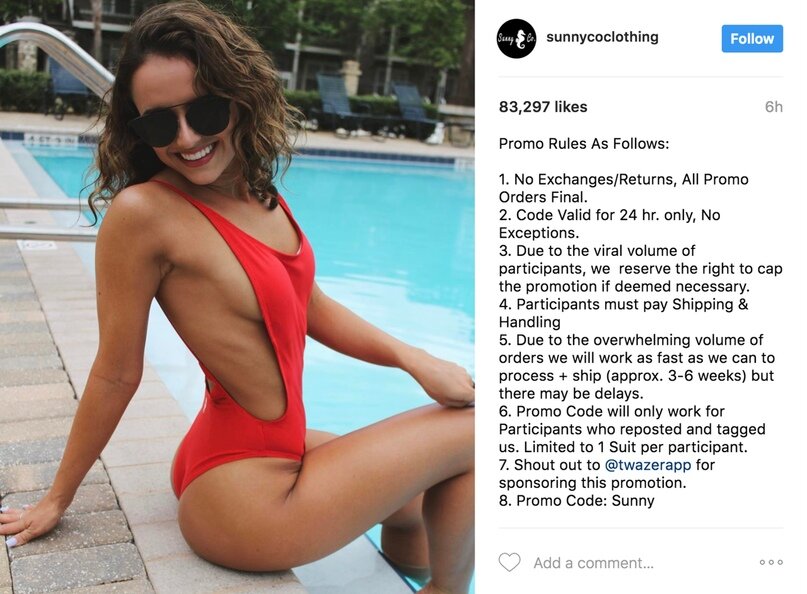 В 2017 году двое студентов из США для раскрутки своего магазина купальников https://www.instagram.com/sunnycoclothing/ решили запустить акцию.
