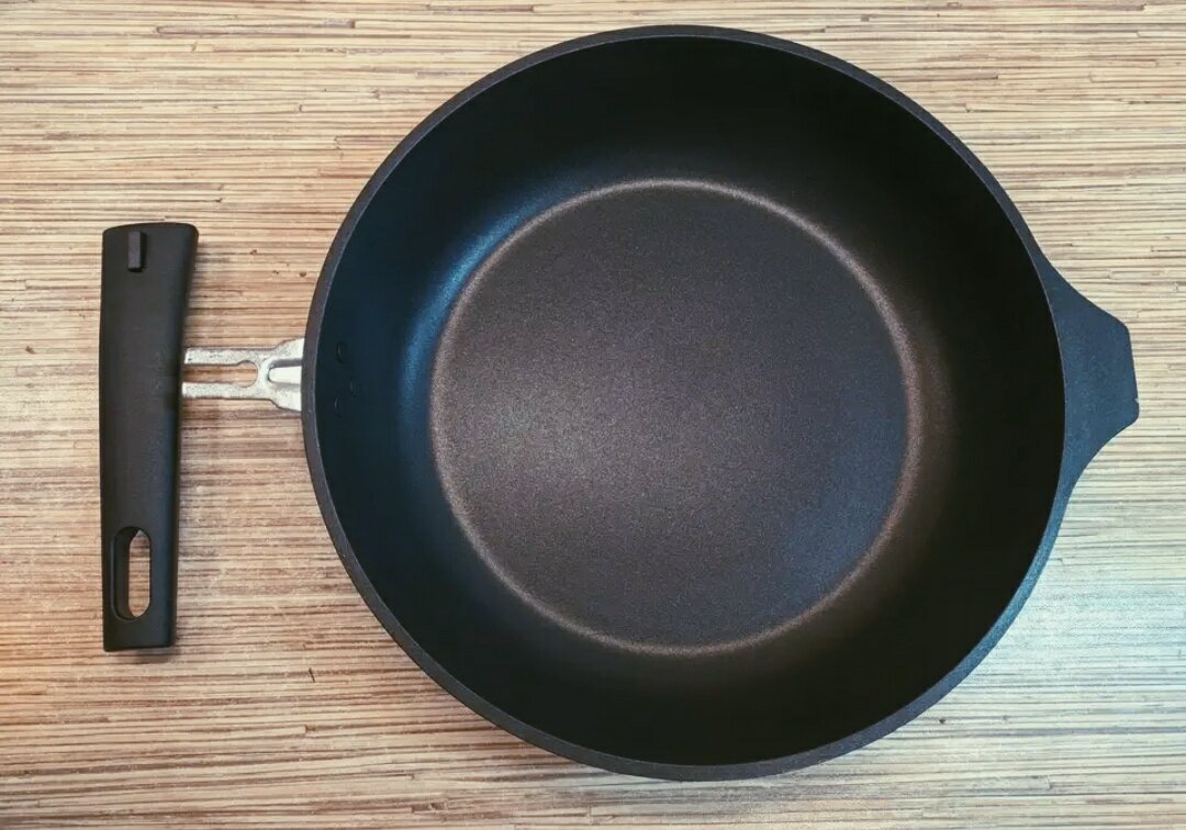 Сковорода-гриль Ситон диаметром которой 26 см придется, как нельзя кстати на любой кухне, ведь она обладает утолщенным дном, позволяющим использовать ее даже на индукционных плитах. Вы сможете использовать металлические лопатки для перемешивания продуктов, не боясь повредить внутреннее покрытие. Корпус чугунный. Можно снять ее деревянную ручку, чтобы поместить в духовку для последующего запекания продуктов. Так же можно приготовить блюда на гриле.