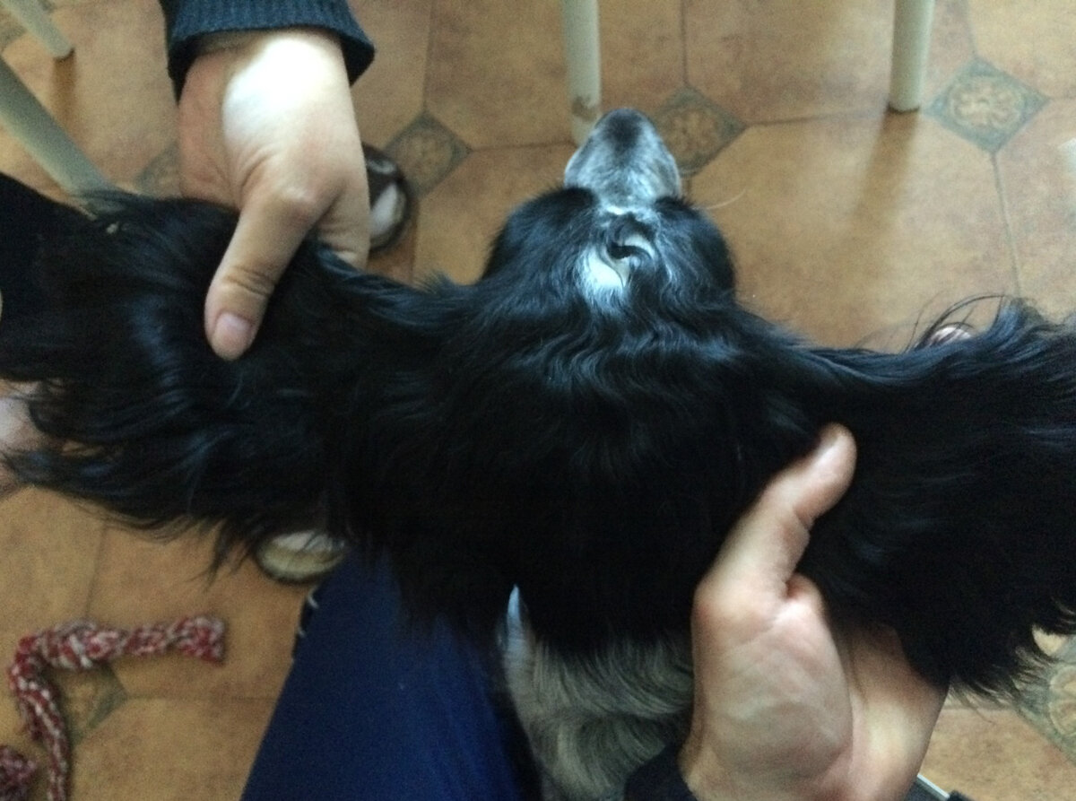Ухаживать за щеночком - это не очень трудно и даже приятно))) Шерсть ещё молоденькая, гладкая и не запутывается. Но вот ушки !!! За ушками надо с детства следить, я имею ввиду расчёсывать, именно уход за шерстью.