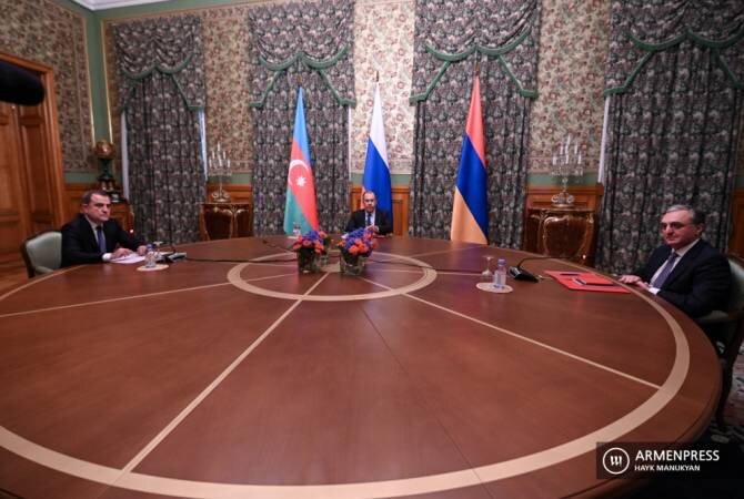 Переговоры между главами МИД Армении, России и Азербайджана - Зограбом Мнацаканяном, Сергеем Лавровым и Джейхуном Байрамовым продолжаются уже около 9 часов. Как сообщает Арменпресс, переговоры, начавшиеся 9 октября, несколько раз прерывались.