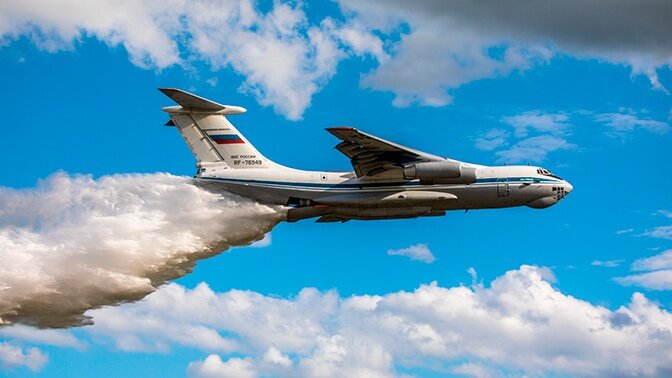 В пятницу, 9 октября, авиация Минобороны России сбросила свыше 1,4 тысяч тонн воды в Скопинском районе Рязанской области. В течение дня экипажи самолетов Ил-76 военно-транспортной авиации ВКС России, оборудованные выливными авиационными приборами ВАП-2, совершили 12 самолетовылетов для проливки территории, сбросив 504 тонны воды. Заправка самолетов водой осуществлялась на военном аэродроме