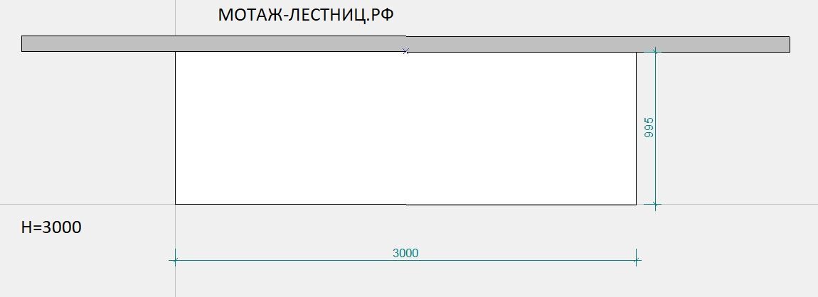 В нашем случае, для примера, мы взяли следующие параметры проема для будущей лестницы (все размеры на схемах в миллиметрах):
