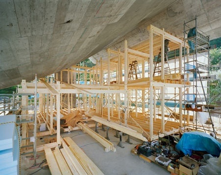 Проект, названный Kuri, предусматривал строительство изогнутой бетонной крыши, под которой был построен деревянный каркас интерьера.