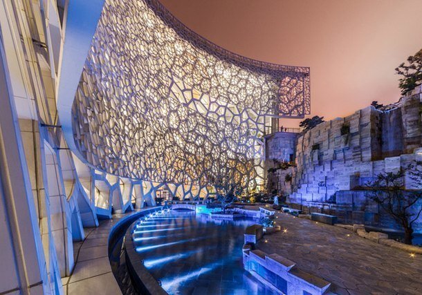 30-метровый атриум приветствует посетителей обилием естественного света, который фильтруется через поразительную стеклянную
