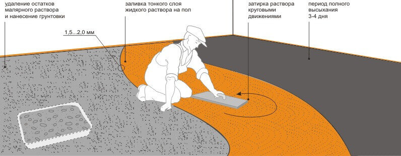 После строительных работ остается немало мусора, который обязательно нужно убрать перед началом работы с грунтом. Перед стяжкой пола избавляются от трещин и неровностей покрытия.