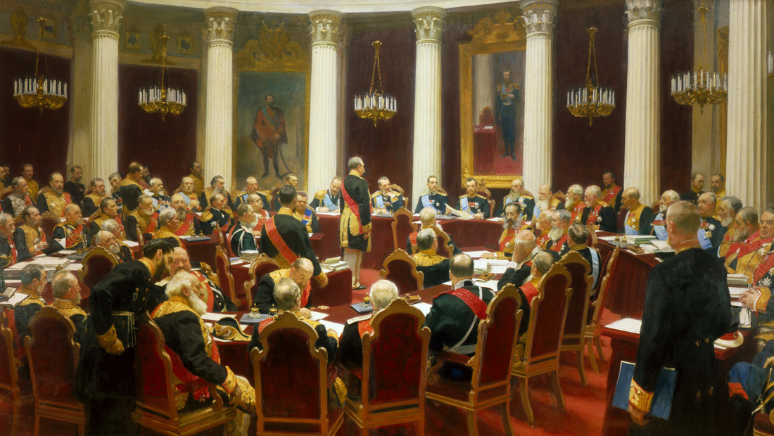 "Торжественное заседание государственного совета 7 мая 1901 года" - царский заказ Репину, картина о которой впоследствии скажут "Карфаген перед разрушением".