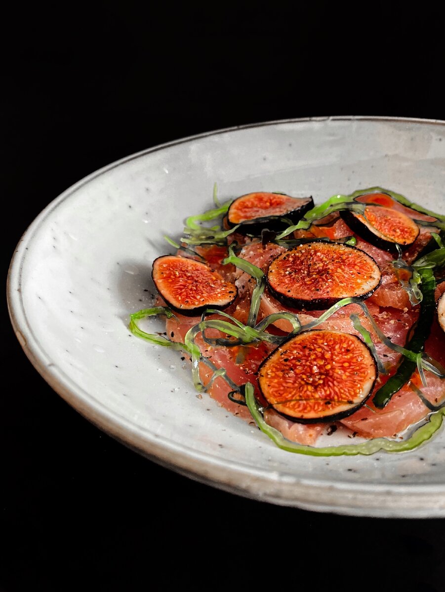 Надоела домашняя и скучная еда ? Не знаете чем удивить гостей? Тогда это блюдо для вас. Быстро , вкусно и изыскано. Сочетание сырой рыбы и инжира вас приятно удивит! А легкая пикантность не оставит ваши вкусовые рецепторы равнодушными.