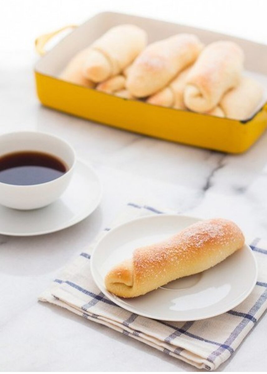 Тесто разделите на 2 равные половины. Каждую скрутите в "колбасу" и нарежьте на 8 частей. Каждую часть раскатайте в прямоугольник, смажьте растопленным маслом, присыпьте панировочными сухарями и сахаром, после чего - закрутите, начиная с одного края.Сверху еще раз присыпьте сухарями и сахаром.