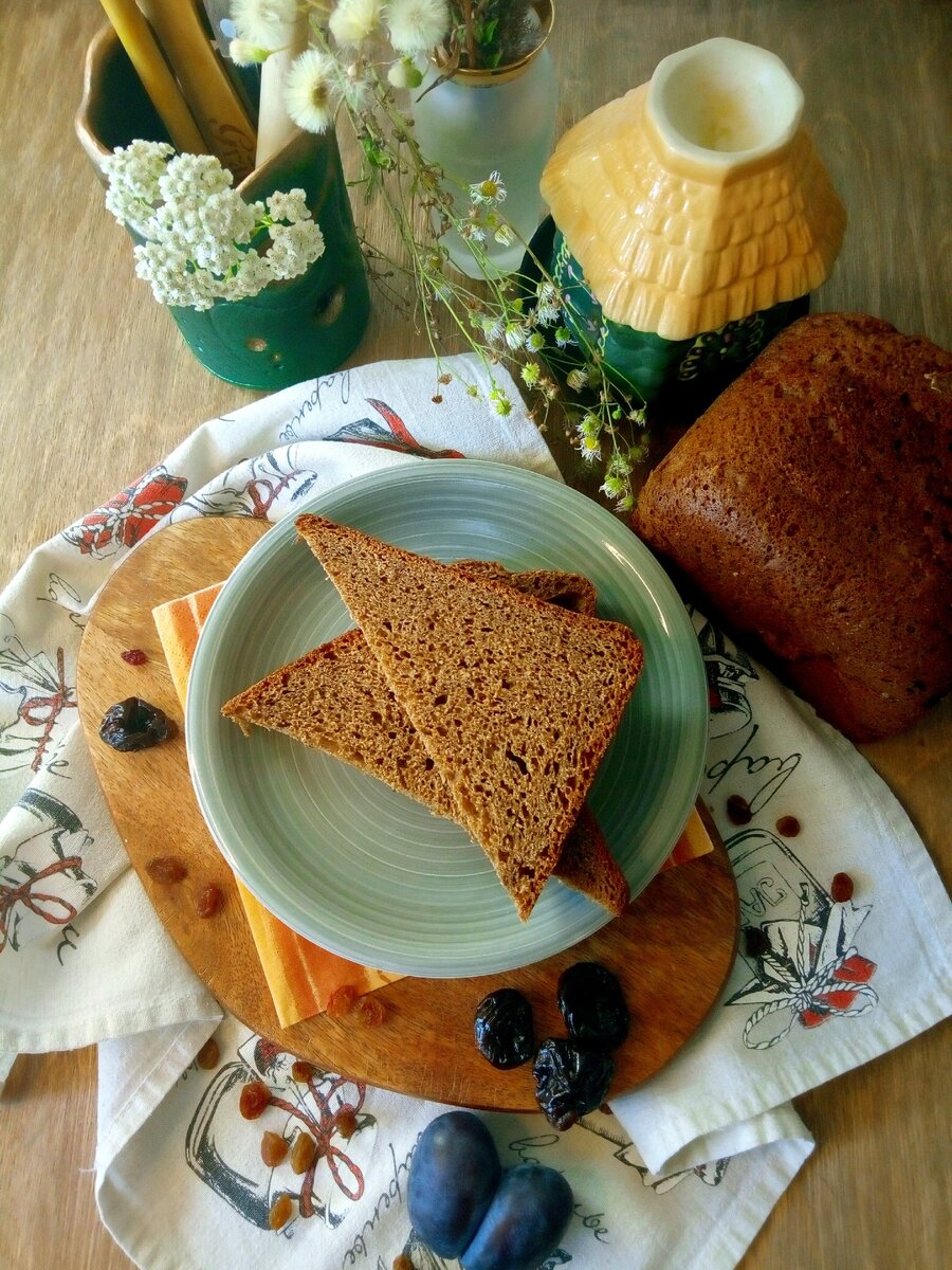 Невероятно вкусный хлеб, попробовав однажды, хочется еще кусочек и еще! Такой хлеб хорош для бутерброда, нереальное наслаждение с паштетом, да и просто кусочек с чаем доставит большое удовольствие! Чернослив и изюм придают хлебу сладости, а также изысканного вкуса.