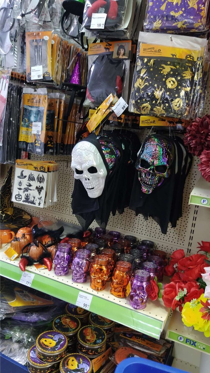Зашла в Фикс Прайс на днях, а там уже новая коллекция для празднования Хэллоуина. Посмотрим, что привезли ))