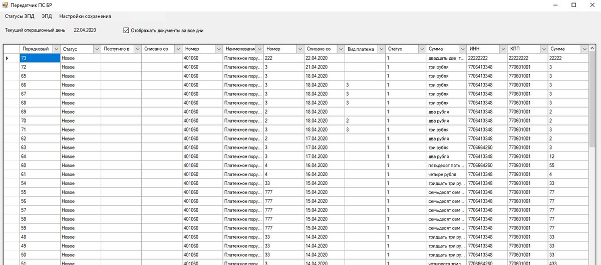 Осуществляем отправку сформированного сообщения через АРМ КБР/ АРМ КБР СПФС в платёжный контур ЦБ РФ.