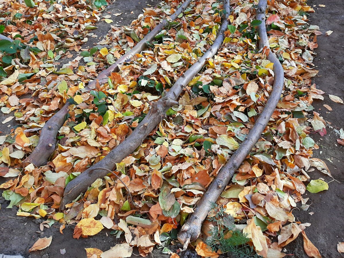 Используем мы для укрытия только листву от собственных яблонь, так как мы уверены в ее чистоте и в отсутствии различных вредителей и химикатов на ней.
