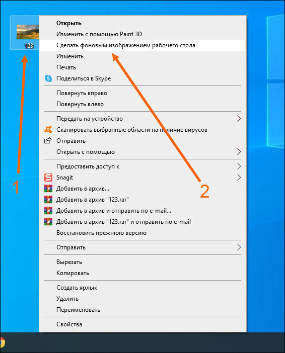 В открывшемся окне, нажать на пункт "Сделать фоновым изображением рабочего стола".