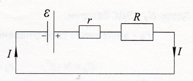 Для школьников. Задача 1. Электродвижущая сила батареи 6 В. При замыкании её на внешнее сопротивление в 1 Ом она даёт ток силой в 3 А. Какова будет сила тока при коротком замыкании этой батареи? Решение. Внутреннее сопротивление батареи найдём, применив закон Ома для полной цепи Оно равно 1 Ом. Ток короткого замыкания равен 6 А. Ответ: 6 А Задача 2. Гальванический элемент с ЭДС 1,5 В и внутренним сопротивлением 1 Ом замкнут на внешнее сопротивление 4 Ом. Найти силу тока в цепи, падение напряжения во внутренней части цепи и напряжение на зажимах элемента. Решение. Силу тока в цепи найдём из закона Ома для замкнутой цепи: Ток равен 0,3 А. Падение напряжения во внутренней части цепи равно 0,3 В. Напряжение на зажимах элемента меньше ЭДС на падение напряжения во внутренней части цепи, поэтому Оно равно 1,2 В. Задача 3. Батарея с ЭДС 6 В и внутренним сопротивлением 1,4 Ом питает внешнюю цепь, состоящую из двух параллельных сопротивлений 2 Ом и 8 Ом. Определить разно
