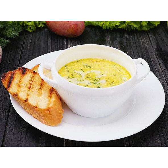 Для начала выкладываем мясо в кастрюлю (~ 3 л), заливаем водой и доводим до кипения. После того как бульон закипел, добавляем одну чайную ложку соли, парочку горошков черного и душистого перца, и три листика лаврового листа, затем варим примерно 20 минут с момента закипания, после вынимаем мясо. Пока мясо варится мы подготавливаем остальные ингредиенты. Чистим картофель, лук и морковь, картофель и лук нарезаем кубиками, а морковь натираем на терке. Плавленый сыр натираем на терке либо нарезаем на кубики. Картофель отправляем в кипящий бульон, с момента закипания 8-10 минут. После того как мы выложили мясо из бульона, мы его нарезаем на небольшие равномерные кусочки. Приступаем к зажарке, в небольшую сковороду растапливаем сливочное масло, отправляем туда лук, затем добавляем морковь, слегка солим и перчим, и не забываем тщательно перемешивать. Готовую зажарку добавляем в суп и варим около семи минут, затем добавляем нарезанное мясо и варим около пяти минут. На последки добавляем плавленый сыр, и очень-очень тщательно перемешиваем, выключаем огонь и даем супу настояться около 10 минут. Перед подачей супа посыпаем мелко нарезанной зеленью, желательно суп подавать с гренками.