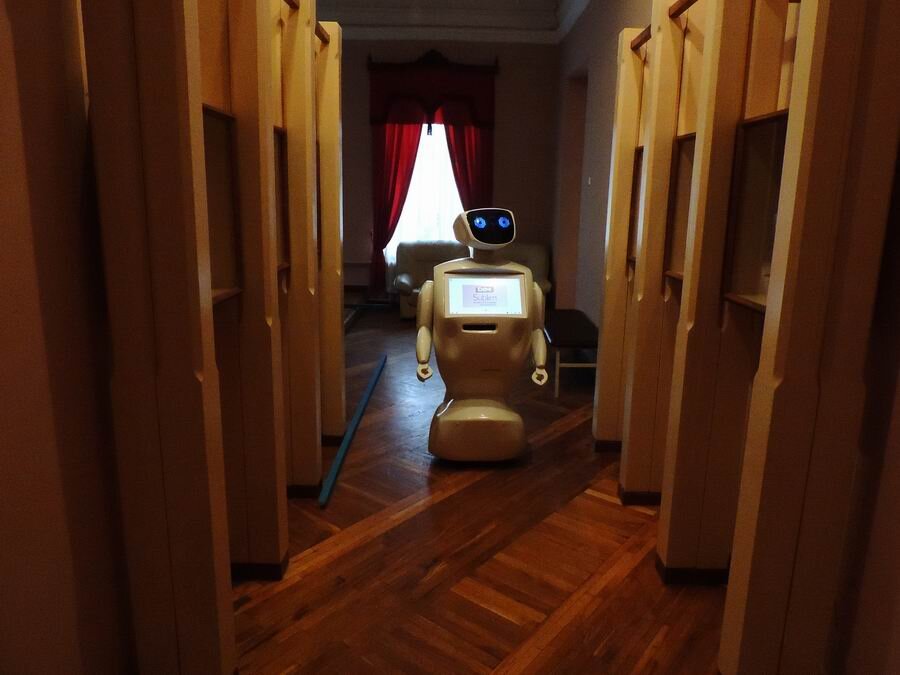 А теперь представляете себе наше состояние, когда рано утром неожиданно открывается дверь кабинета сотрудников в музее Н.Г.Славянова, заходит робот и спрашивает: "Как пройти на выставку "Вторжение роботов"?