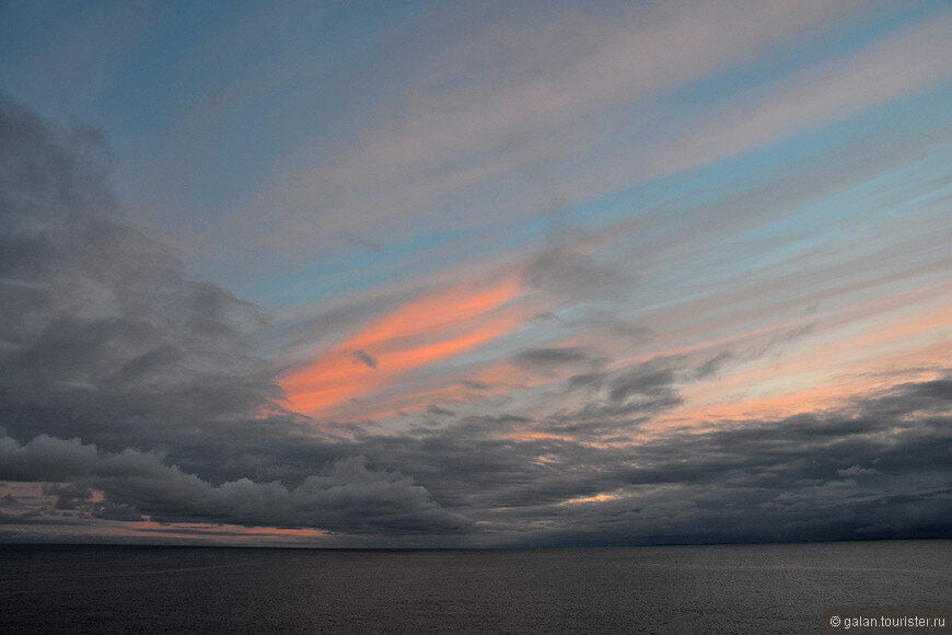 Поэтому я покажу рассвет накануне. То есть в день морского перехода из Саутгемптона до Бергена. Рассвет в Северном море.