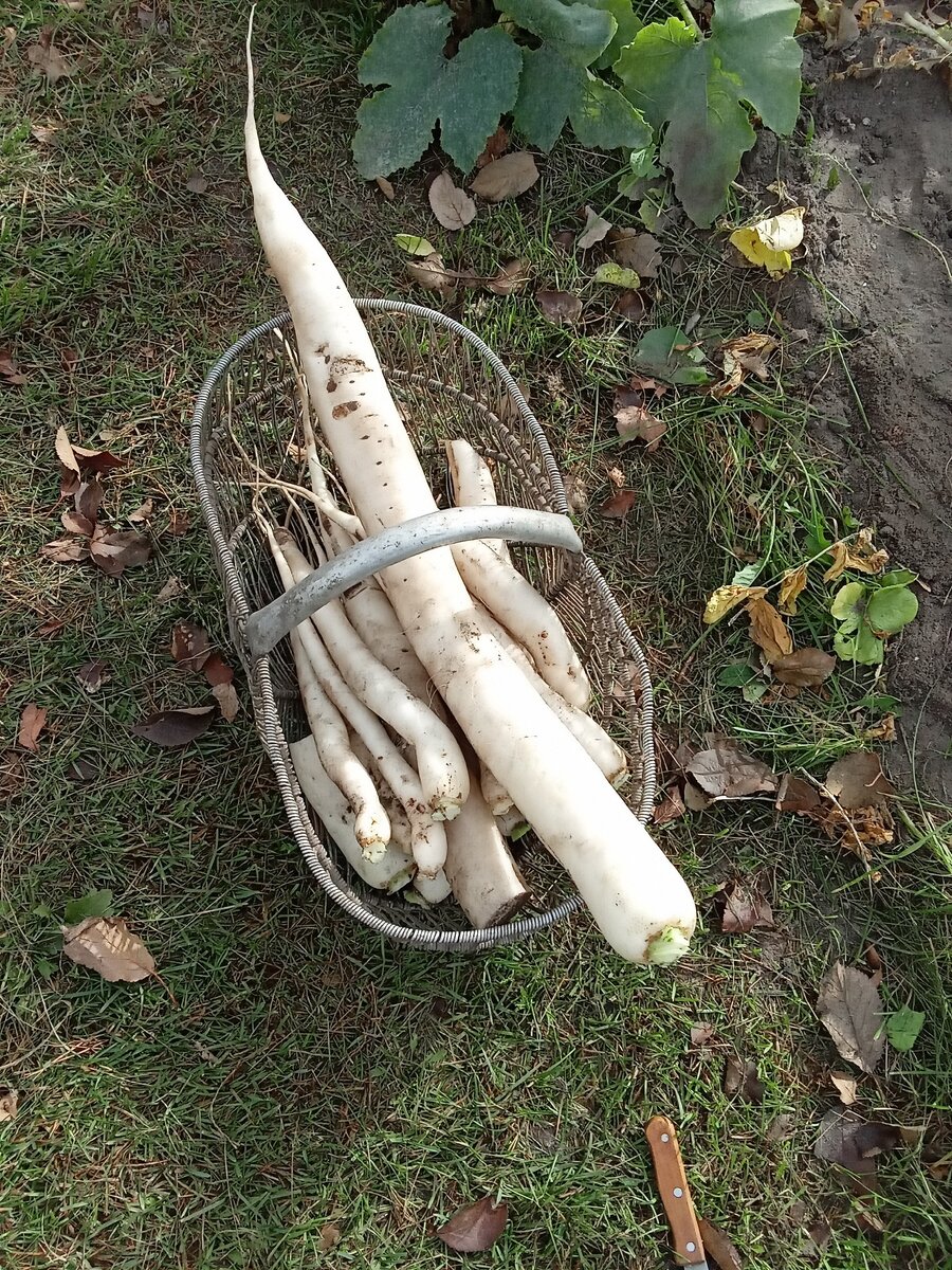 Сегодня убирала урожай дайкона и зимней редьки. Дайкон меня сильно удивил и приятно обрадовал.