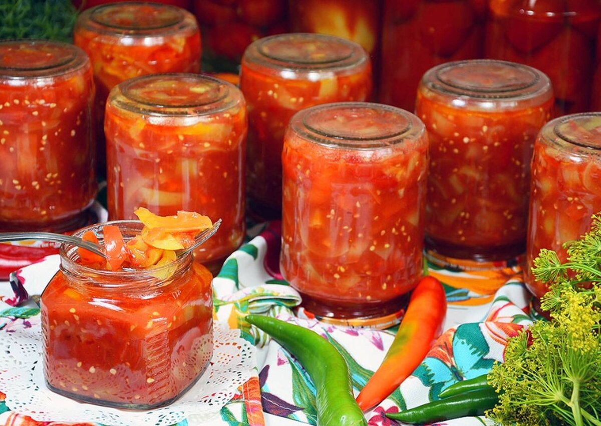 Разложить заправку из овощей на зиму по чистым сухим банкам, немного утрамбовывая. Закрыть пластиковыми крышками или металлическими крышками твист-офф (с резьбой). Из указанного количества ингредиентов получается 1,5 литра заправки.