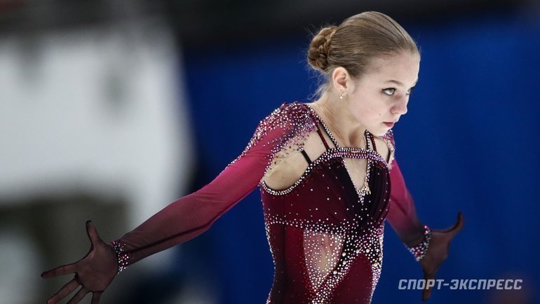 Александра Трусова. Вышла в бордовом варианте платья Дейенерис из прошлогодней произвольной. Странно, подумала я. Сейчас выяснилось, что просто новое сшить не успели, так что всё в порядке, а то я расстроилась, что платье так к музыке не подходит. Ну, с первого четверного лутца степ-аут, четверной тулуп-тройной тулуп - не придраться, на третьем четверном, тулупе, небольшая помарка на выезде, но её не особо засчитали. С лутц-риттбергера неожиданное падение, да и Саша снова больше сконцентрировалась на прыжках, на контрольных прокатах она в произвольной больше музыку слушала. 164,82 за произвольную и 240,59 в сумме принесли Саше первое место.