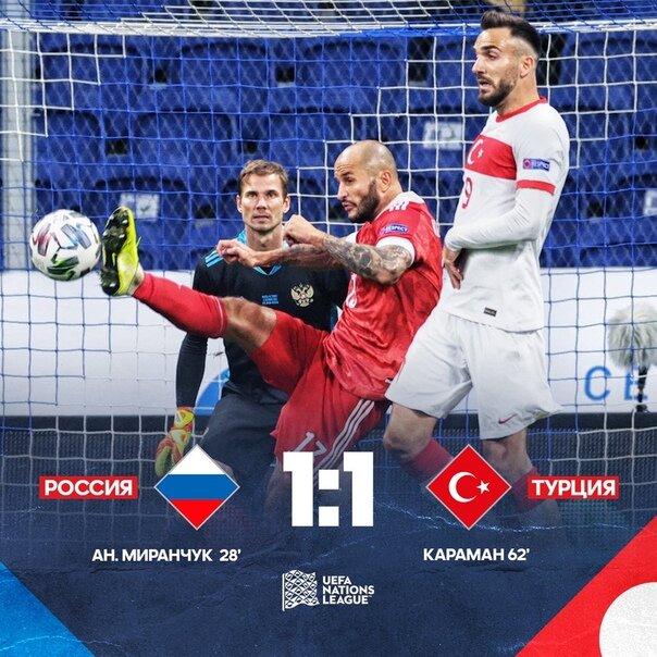 На гол Антона Миранчука гости ответили мячом Кенана Карамана – этот гол стал для турок первым в этом розыгрыше Лиги наций.