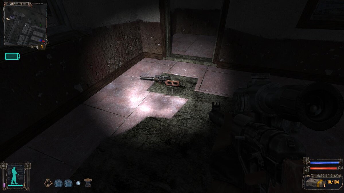 Заходим внутрь, идем к противоположной от входа стороне, забираем винторез.