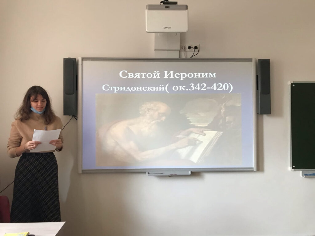 30 сентября отмечается международный день переводчика. В рамках клуба межкультурной коммуникации прошли презентации проектов. Студенты кафедры "Зарубежная филология" с удовольствием рассказали о личности Святого Иеронима, о переводах Библии - Септуагинте и Вульгатте, и затронули еще много разных тем. Ксения Ростиславовна Горелова, преподаватель иностранного языка, рассказала об "Этическом кодексе