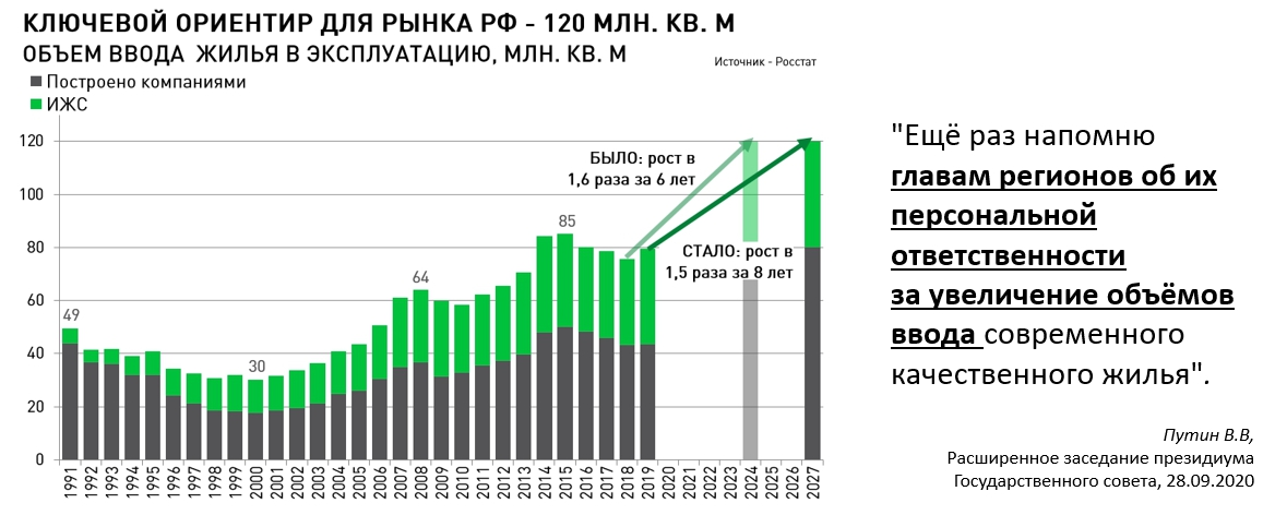 От всех региональных чиновников продолжают требовать увеличения ввода жилья. Но результаты 2020 года остаются крайне контрастны. Рассматриваем промежуточные итоги посткарантинного периода. Президент не устает грозить губернаторам о персональной ответственности за срыв планов по вводу жилья. Последний раз это произошло на заседании президиума Госсовета в конце сентября. Но рыночные показатели по объему строительства в последние месяцы почти не меняются, несмотря на отличные продажи новостроек. Промежуточные результаты 2020 года остаются крайне контрастными. В отдельных регионах объем жилья, находящийся в стадии строительства растет, в других - быстро снижается. Изменение показателей текущего строительства отразится на вводе жилья в 2021-23 гг. Отличные результаты ипотечного рынка, рост продаж новостроек на фоне льготного кредитования должны были бы подтолкнуть девелоперов к быстрому выводу на рынок новых проектов. Но этого не происходит. Пока