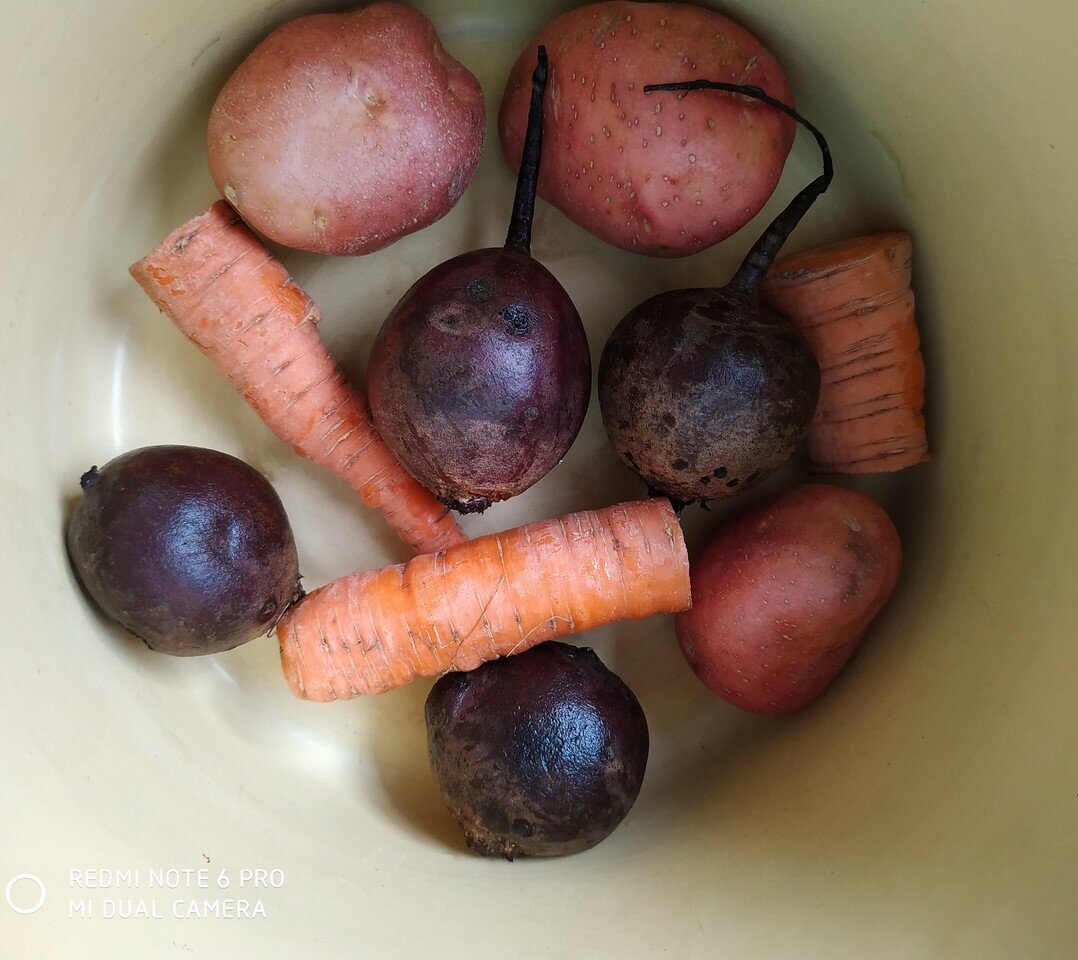 Для начала вымоем наши овощи с кожурой и отправим их в кастрюлю с водой для варки.