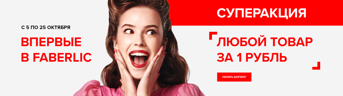 Компания "Фаберлик" впервые проводит интересную акцию. В чём она заключается? В период с 05.10. по 25.10. этого года появилась возможность приобрести один товар бесплатно, а именно за символическую стоимость в 1 рубль. Рассмотрим как это работает. При оформлении заказа в данный период времени, каждый шестой товар с наименьшей ценой в Вашей корзине будет иметь стоимость 1 рубль. Таким образом,