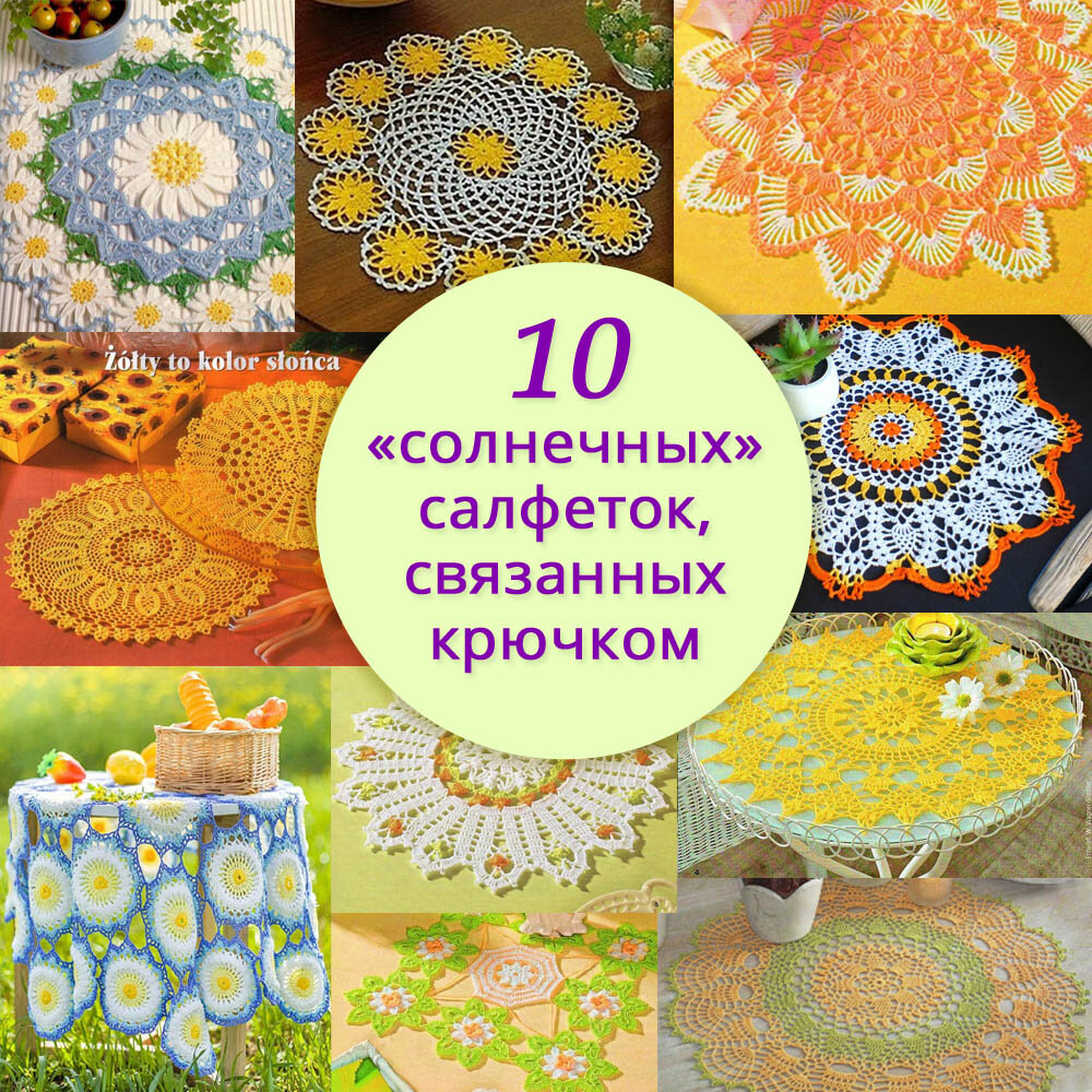 Предлагаю вашему вниманию 10 чудесных салфеток. связанных крючком. Красивые и "радостные" ажурные аксессуары добавят уюта в доме и внесут легкое "сияющее" настроение в обстановку квартиры.