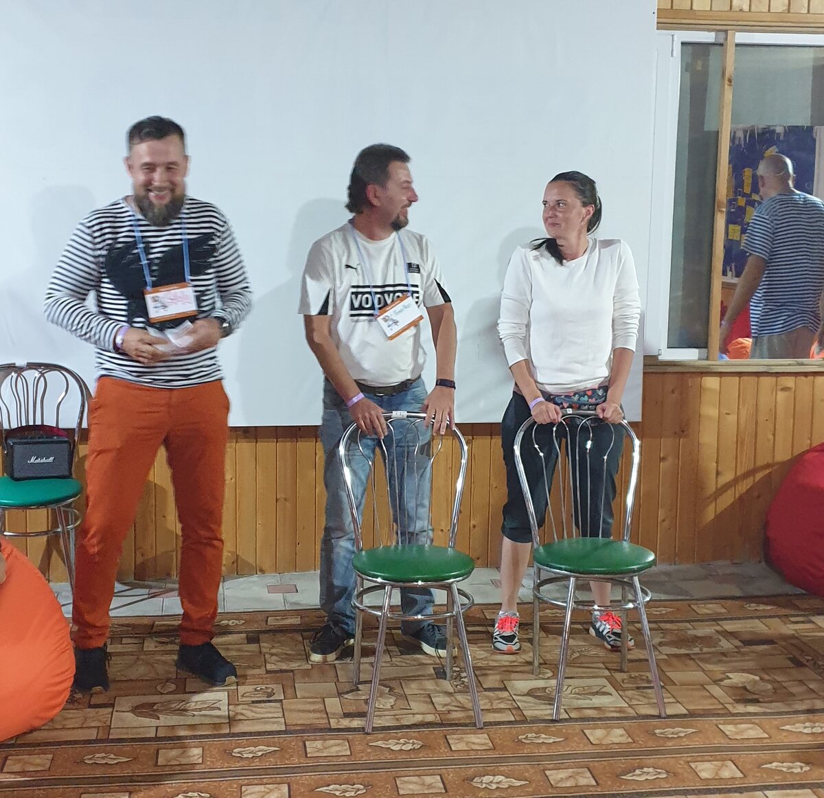 Создавать эмоции начали с самого начала – с обнимашек днем — до креативного знакомства вечером. Знакомство всех со всеми проходило в соревновательном ключе с помощью денежных ставок. Подробности лучше узнавать в самом лагере. Готовьтесь, — и если у Вас есть любимая притча, мудрая история из жизни – будьте готовы поделиться ею в лагере. Кстати, знакомство началось еще раньше в общем чате в вотсап — с публикации фоток. Участники со всей России от Хабаровска до Москвы. Плюс есть возможность поучаствовать в пре и афте-пати по желанию. Жалею, что я проигнорировал данное предложение. В следующий раз исправлюсь. Но при этом повезло – на обеде был шашлык с препати – обалденный и очень вкусный. Хотя и предупредили – Вы в пионерском лагере для взрослых – такая еда будет не всегда. Хотя еда была очень приличной и столовая напомнила счастливое детство, где мы всегда кричали «Спасибо нашим поварам за наш прекрасный ужин». И в нашем лагере не обошлось без этой приятной привычки.