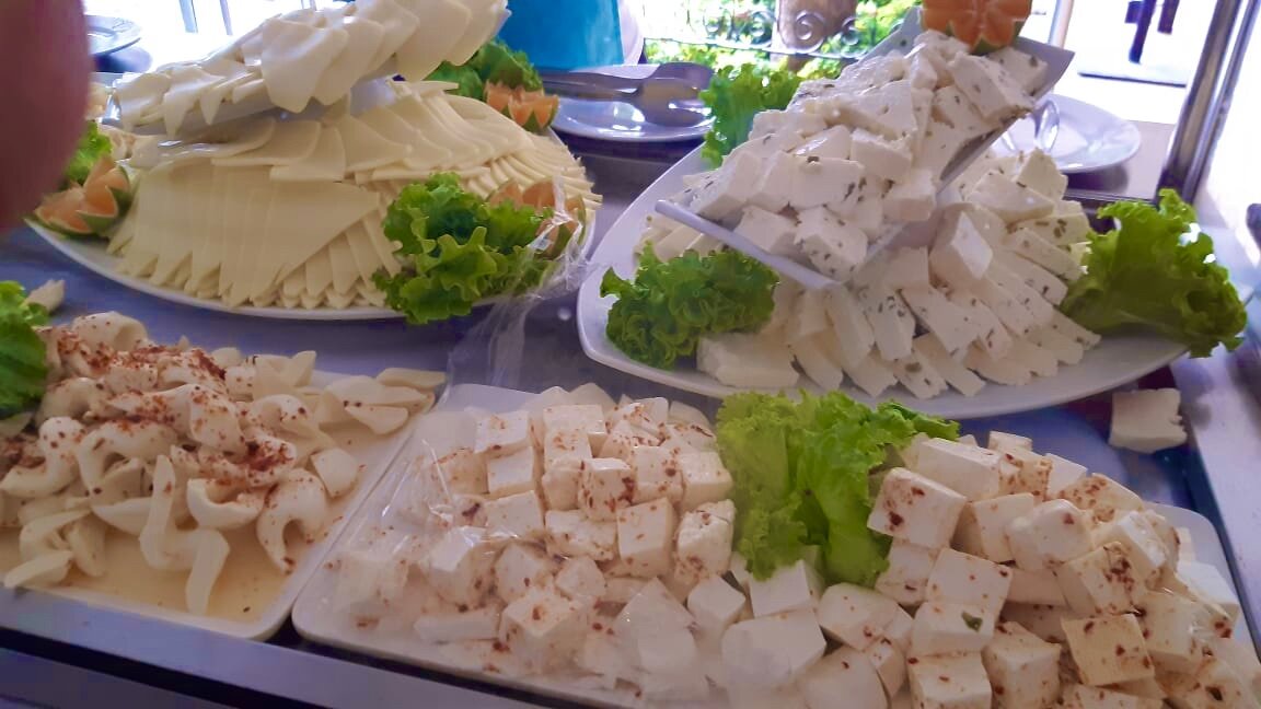 С сырами - тоже очень хорошо! И молодой сыр, и типа брынзы, и творожный, и сливочный, и копченый, и что - то типа турецкого маасдама... и сыр с красным перцем!