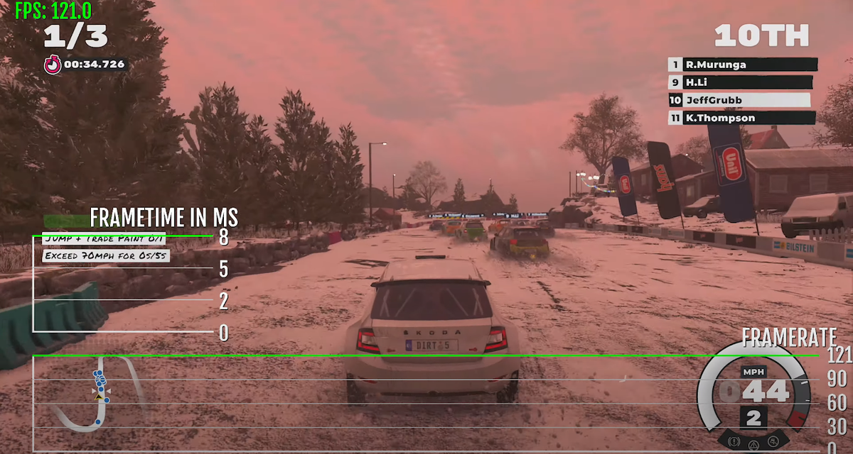 Для гоночных игр стабильная частота кадров крайне важна, но в режиме высокого разрешения и высокой производительности она скачет от 30 до 60 за секунду, а в режиме 120 FPS от 100 до 120 FPS.