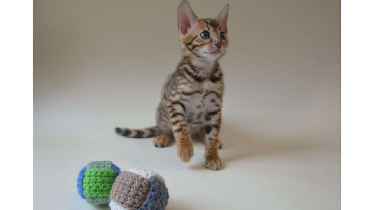 Мячик можно связать не только котенку, можно связать щенку или даже малышу)
