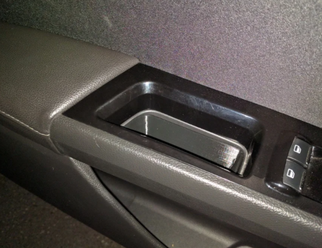 1) Начнем с того что во многих машинах не хватает место под разную мелочь. Так же было и в Ford Fusions 2015. Внутренняя дверная ручка не имеет дна, а просто сквозное отверстие. Эта чашка дверной ручки помещается в отверстие и обеспечивает столь необходимую область для Вашей мелочи,