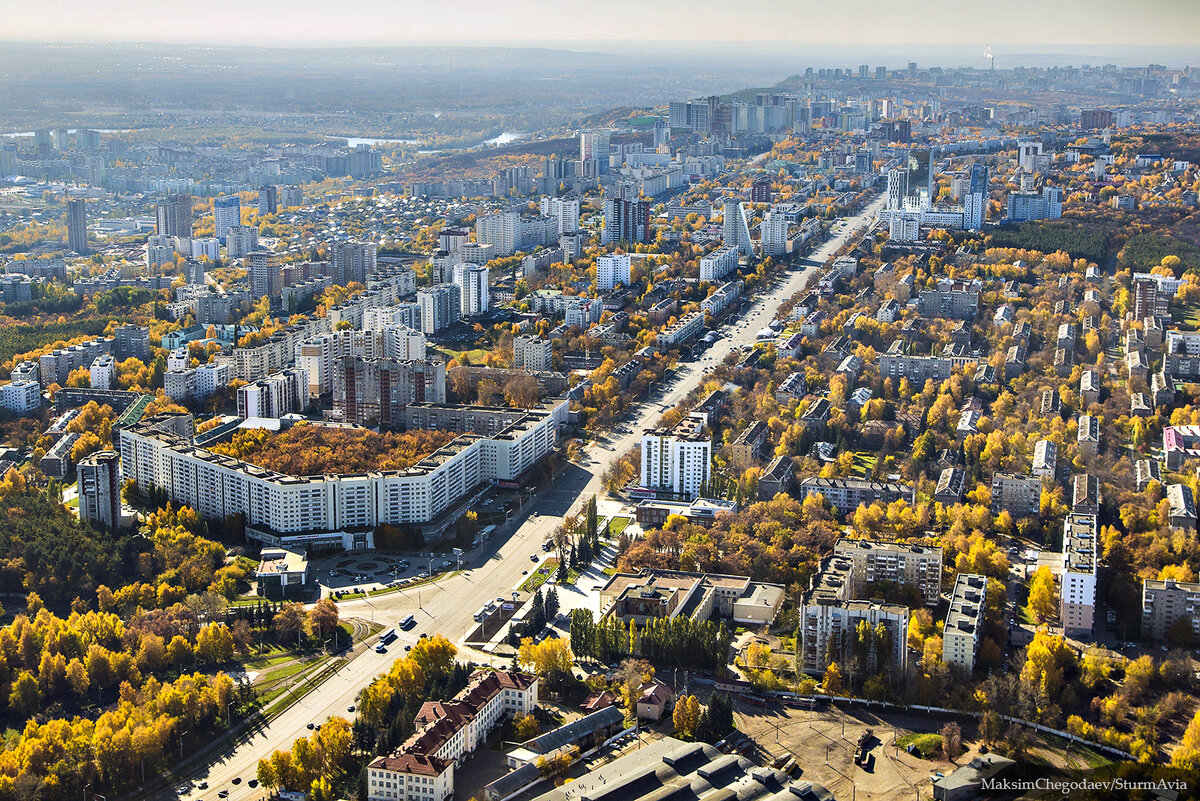 Я хочу показать показать осенние фоточки столицы Башкортостана сделанные из под крыла легкомоторного самолета, с высоты 500-1000 метров, за неделю до праздника.