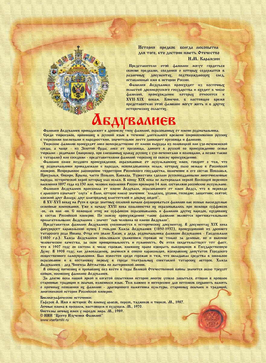 За долгие века нашей яркой и богатой событиями истории многое успело забыться, отошли в прошлое старинные традиции и обычаи, изменился язык. Тем важнее и интереснее для потомков сохранить память о причинах появления их фамилии - драгоценного памятника культуры, старинных обычаев и традиций, многовековой истории Российской империи.