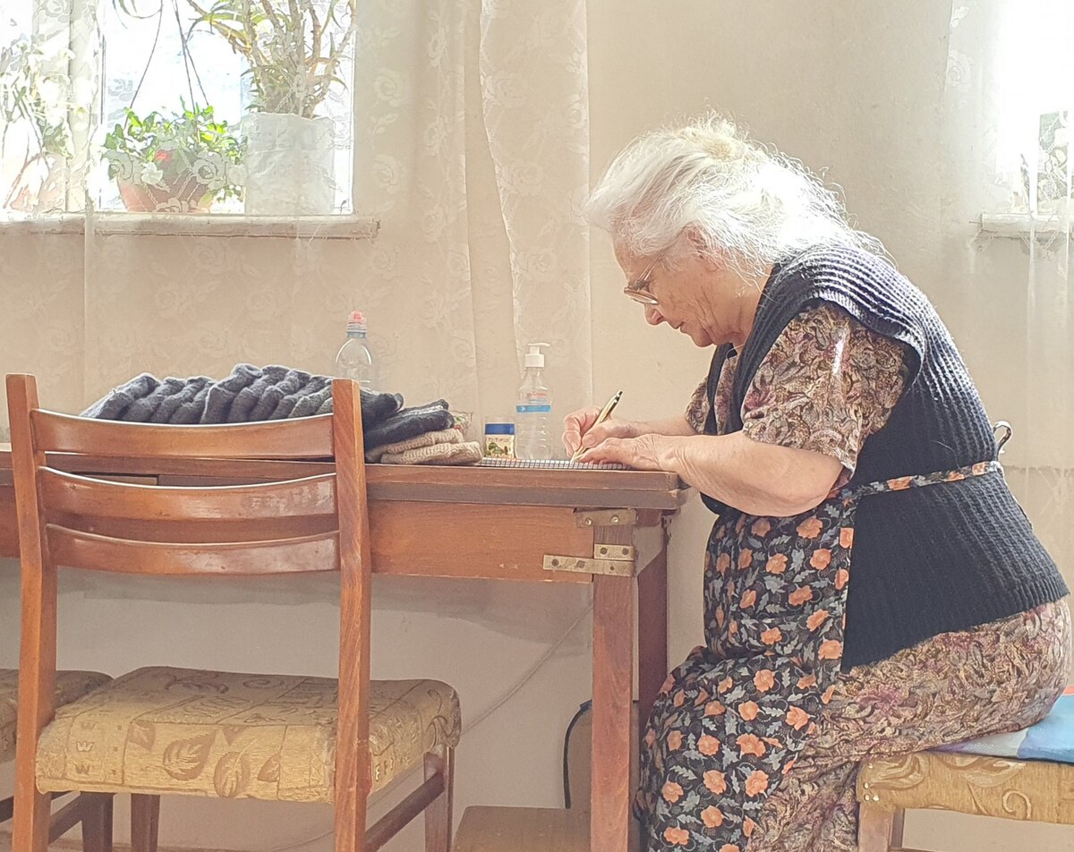 Связала 7 пар теплых шерстяных носков за 8 дней, распустила на нитки длинный жакет. А сейчас пишет записки, чтоб вложить их в пакет с носками и отправить на границу. Попросила, чтоб отправили все в одно место. Обещала, связать еще, если будут нитки, но очень надеется, что нужды в этом не будет.