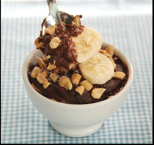 6. Разложите кашу по тарелкам, сверху посыпьте измельченным фундуком и подавайте с банановый соусом.