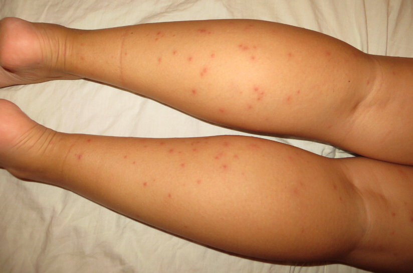Важно: Укусы клопов отличаются от блошиных тем, что паразиты оставляют характерную дорожку. Блохи кусают хаотично. Блошиные укусы находятся на близком и не упорядоченном расстоянии друг от друга.