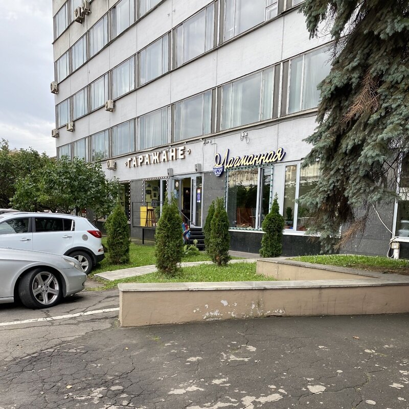 Советское здание. Фасад серый, неприметный. Над большими окнами и входом со ступеньками красуются сразу две вывески: «Гаражане» и «Лагманная». Мой интерес привел меня к первым. Кстати, причина такого странного названия кроется в желании создателей привязать свое заведение к слову «гараж», а не «город».
