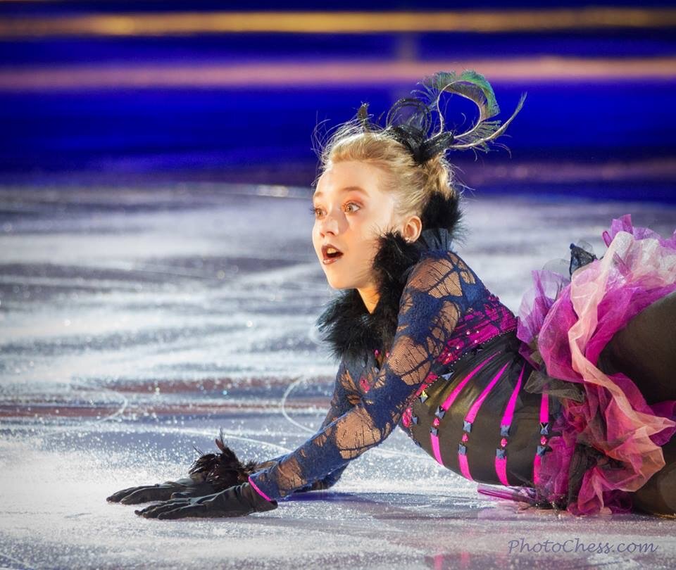 Именно тогда я увидела первый раз юную фигуристку Леночку Радионову. Зажигательная, яркая, миниатюрная и лёгкая - такой запомнилась Лена зрителям показательных на Олимпиаде в Сочи, где она стала приглашённым гостем. В том же 2014 году Лена с этим показательным танцем выступала на "Шоу чемпионов" и участвовала в шоу "Большой на льду" в Корее. Кстати, там же Лена катала и уже упомянутый безумно эффектный "Zombie Dance".