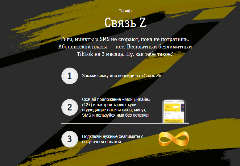 Приятным что стоит отметить что переходе на данный тариф Билайн дарит целых 1 GB мобильного интернета и безлимит на Tik Took в подарок на три месяца.