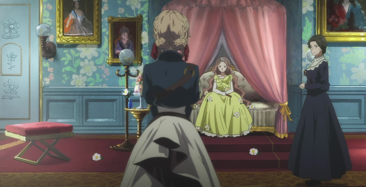 И один из самых красивых и милых моментов произошёл именно тогда, когда работа свела Вайолет с Шарлоттой. 14-летняя милашка должна была стать партией ради заключения политического брака, и даже присмотрела себе 24-летнего избранника, который однажды оказался добр к ней. Но как понять искренность его чувств и не пожалеет ли она о свадьбе с человеком, которого видела лишь однажды?